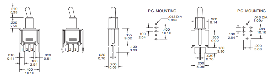 Contact Rating: 3A@120 VAC OR 28 VDC; 0.4VA max@ 20VAC or DC max.