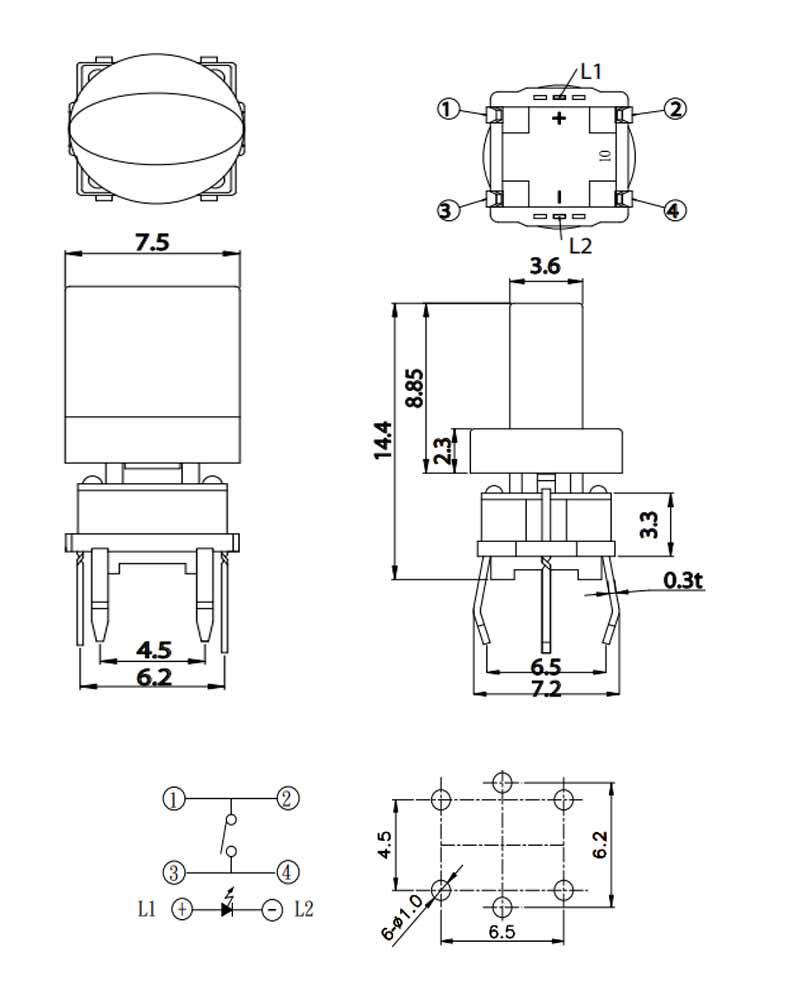 帶燈輕觸開關TS系列,結(jié)構簡單、功能簡單,低電壓低電流,在消費類電子產(chǎn)品上很常見的開關。有插件DIP,貼片SMD;LED燈有單色、雙色和RGB全色;不僅有多種蓋子可以搭配,更能呈現(xiàn)多元的外觀效果。