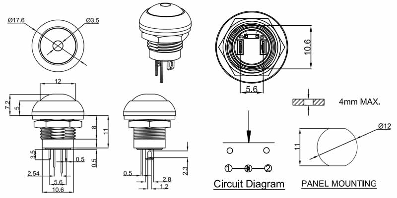 防水按鍵開關M12系列,小尺寸功能齊全,復位常開、常閉,自鎖式,有防水IP65,IP67有配套的防水帽,是戶外設備使用之首選