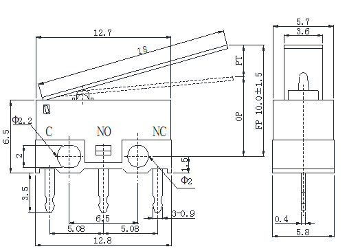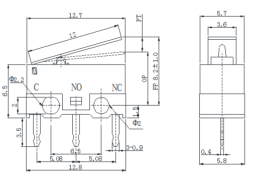 外形尺寸:12.8*5.8mm