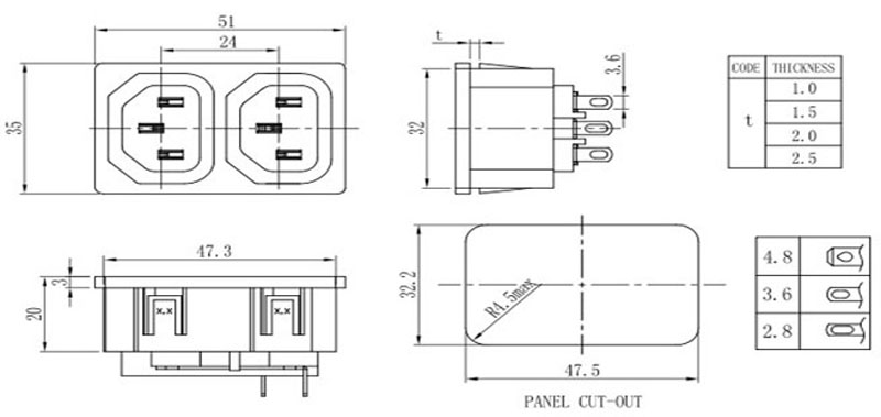 AC電源插座系列,單插、二合一、三合一保險插座等多種規格,大電流10A ,15A,產品通過UL VDE CCC CB等認證,常見于家用電器,音響功放機等
